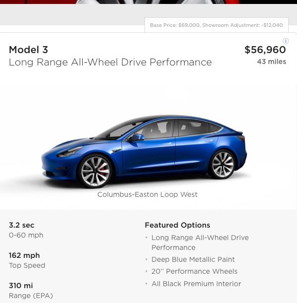 2018 / Model 3 / Long Range AWD Performance / Blue