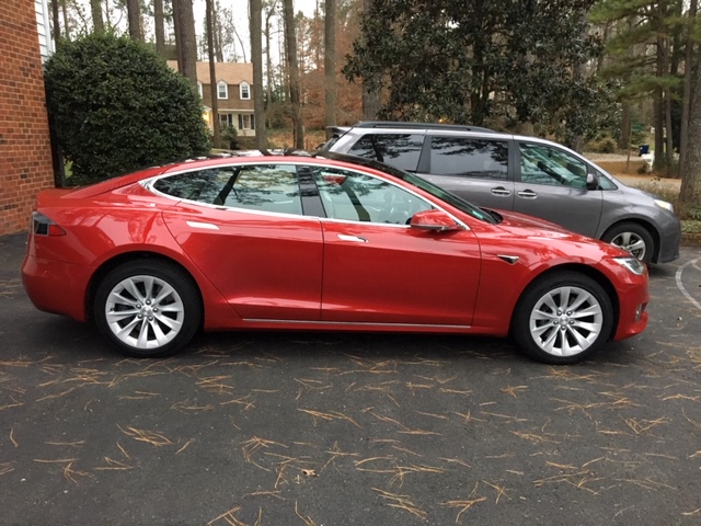 December 2017…3 years left on original 4 year 50k warranty. Tesla allows you to purchase additional 4 year 50k at $5k up to the 4 year mark. 3M Protective Film on front hood, front and rear bumpers and mirrors, $2k upgrade. Red Multi-Coat Paint. Sunroof. 19″ Slipstream Wheels. Cream Premium Interior. Figured Ash Wood. Supercharger Enabled Enhanced Autopilot. High Amperage Charger Upgrade. Smart Air Suspension. Original MSRP $ 107,000. Switched jobs and now have company provided car. Wife has a Model 3…she is only 4’9″, so prefers the visibility in the Model 3 over Model S (this is killing me as I absolutely love the Model S).